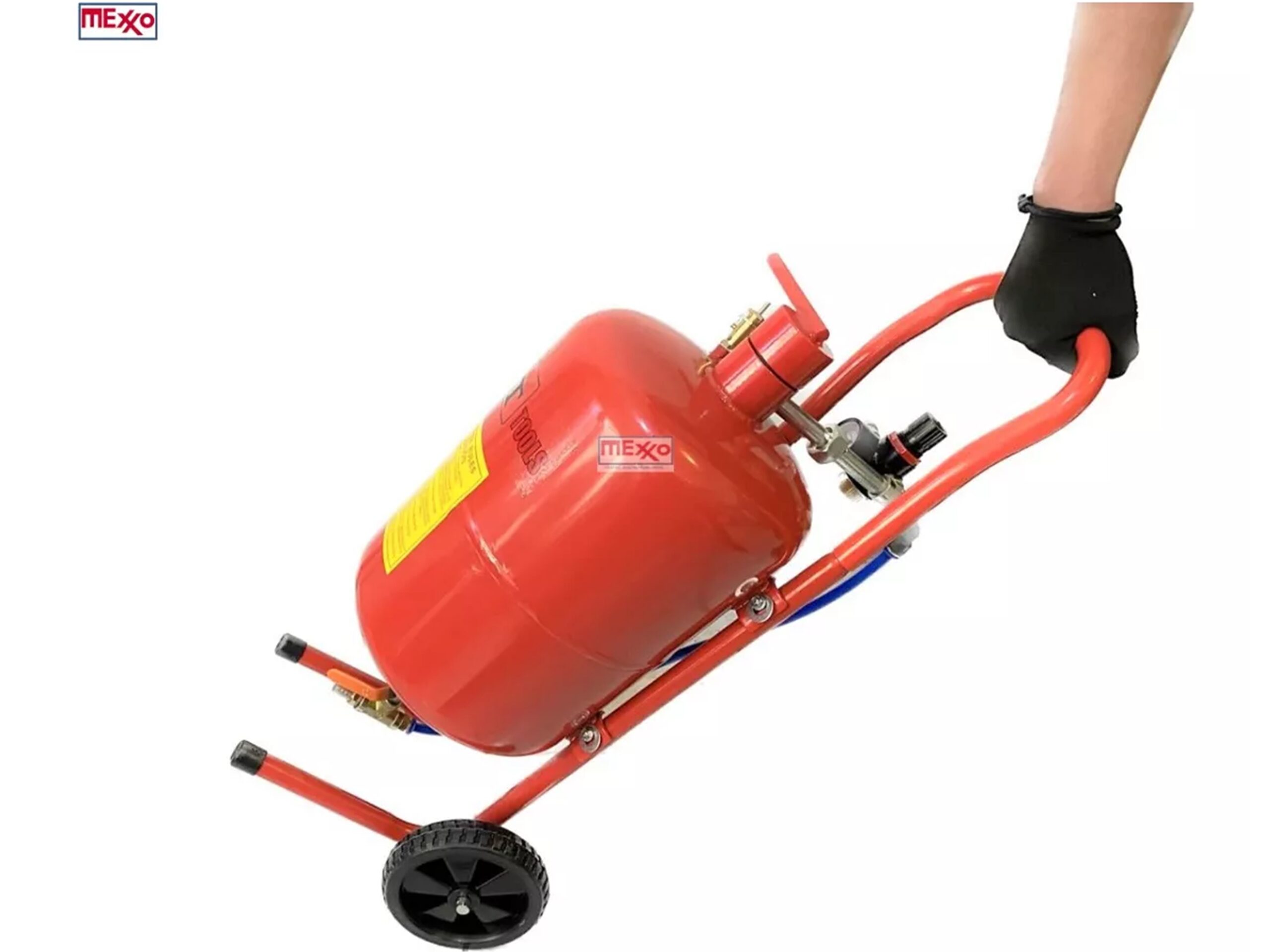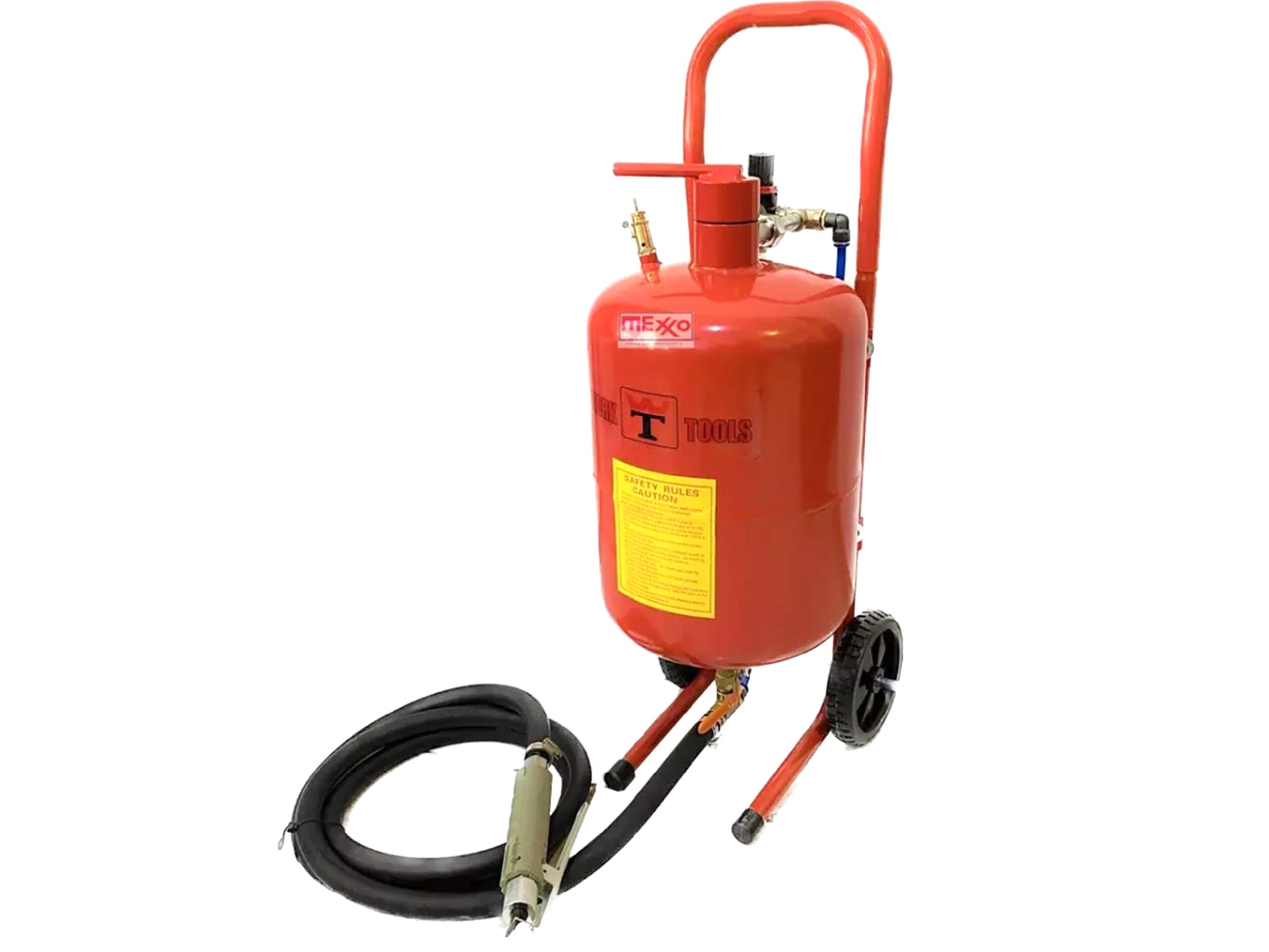 EL CARRO ARENADOR DE 5 GALONES ES UN EQUIPO EFICIENTE Y CONFIABLE QUE UTILIZA ARENA CUARZO PARA LIMPIAR Y PREPARAR SUPERFICIES.