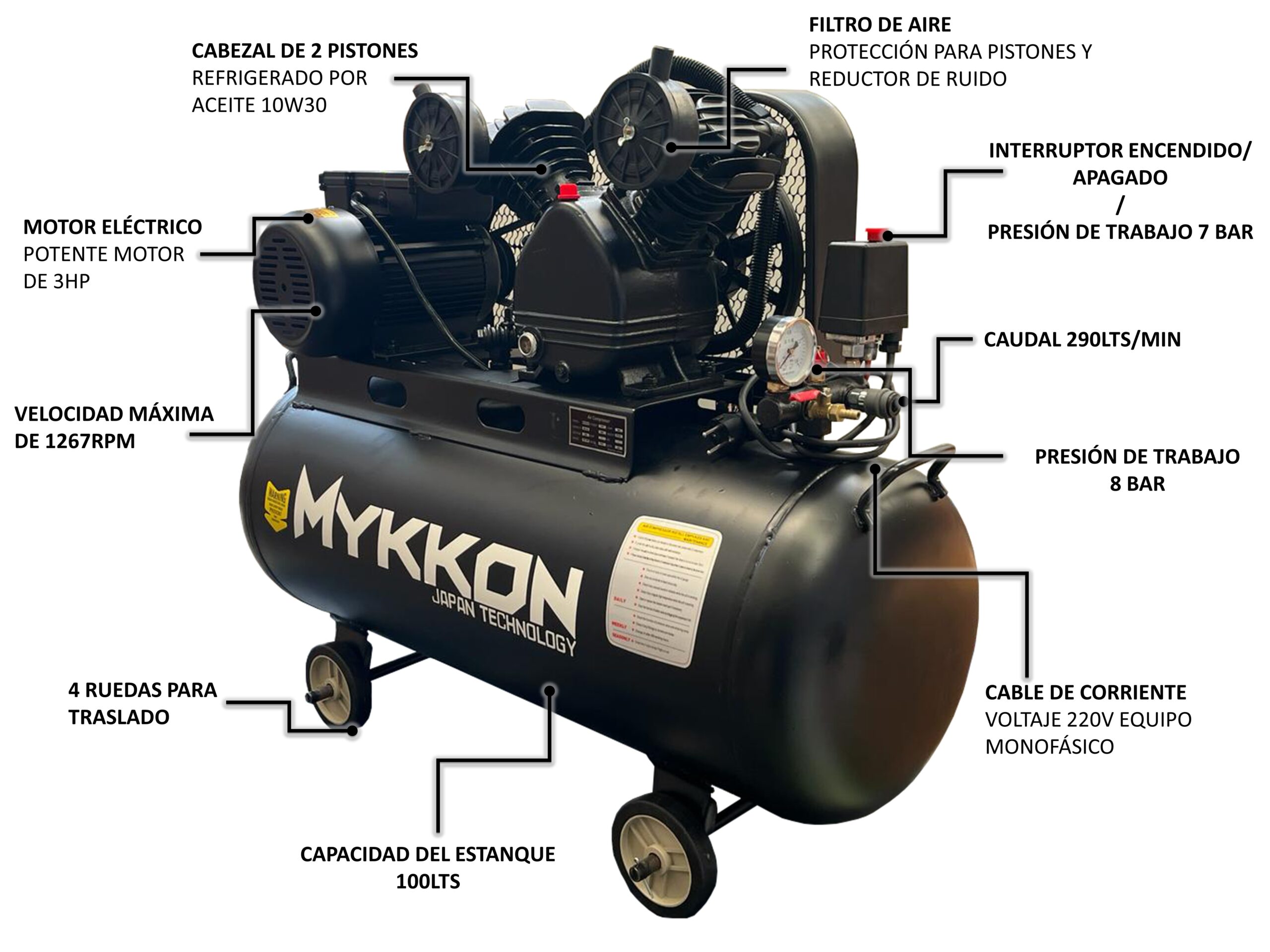 Compresor De Aire 100 Litros 3hp Mykkon Japón