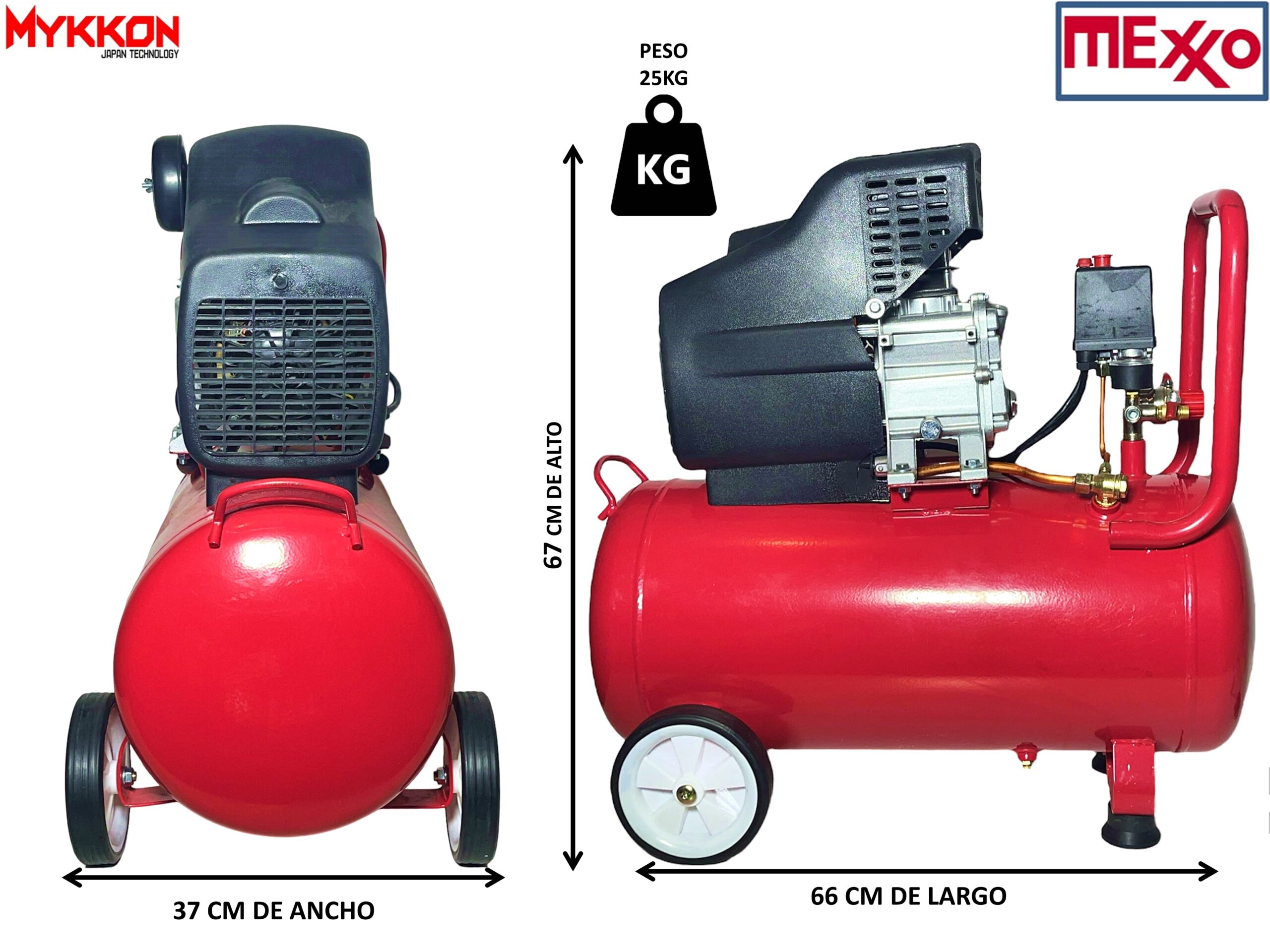 COMPRESOR LURICADO POR ACEITE MARCA MYKKON CAPACIDAD 50 LITROS 2,5 HP
