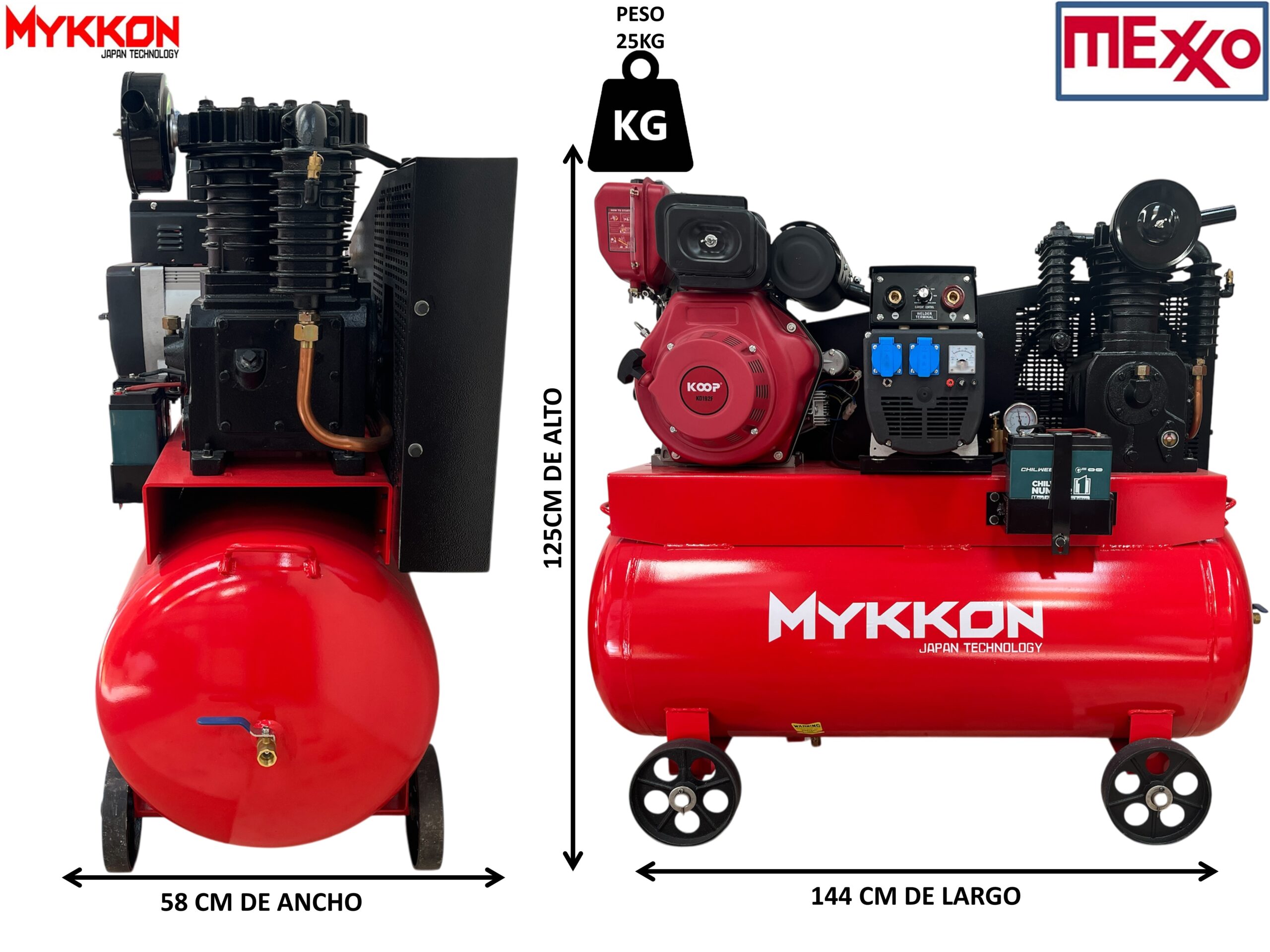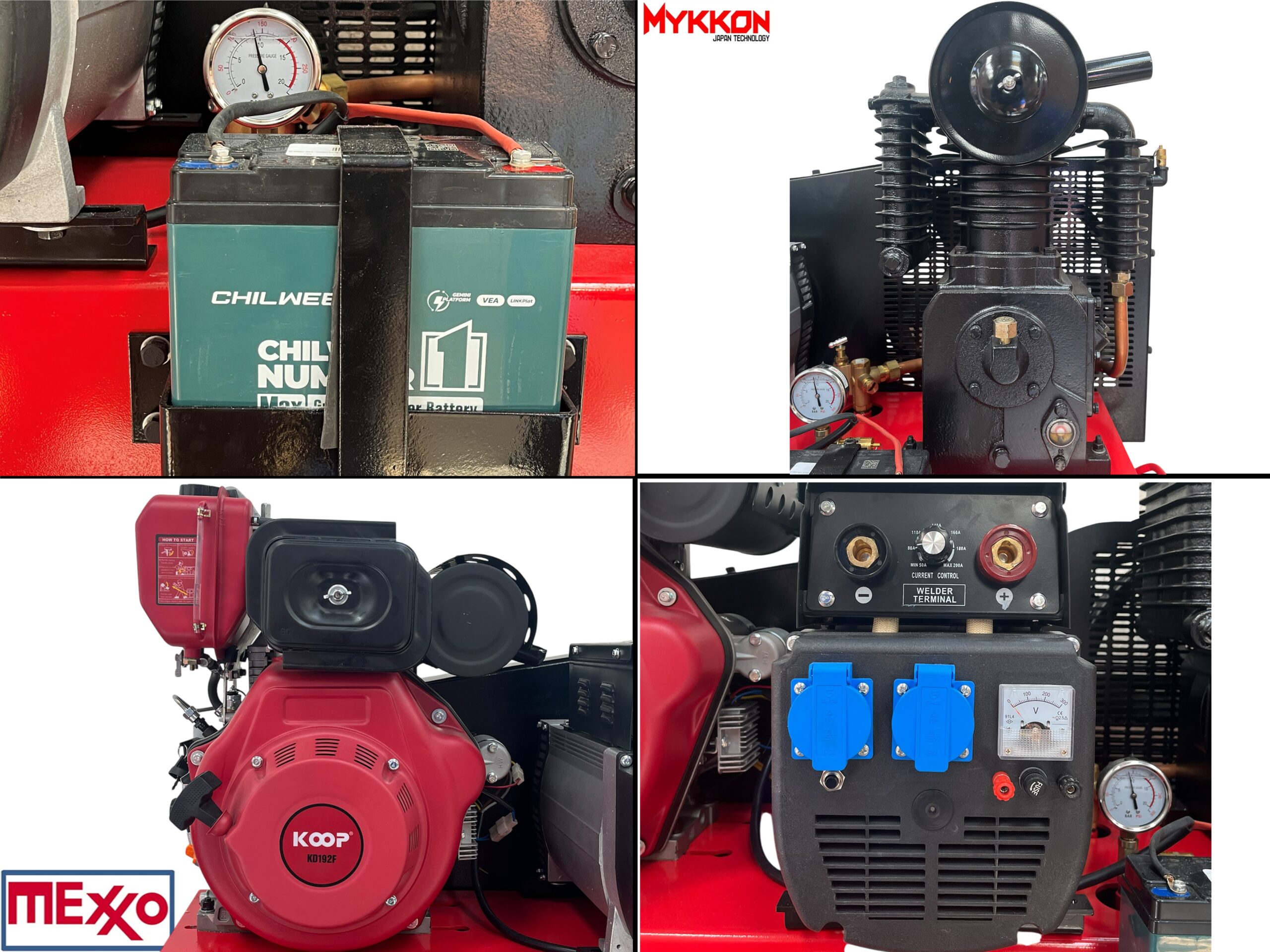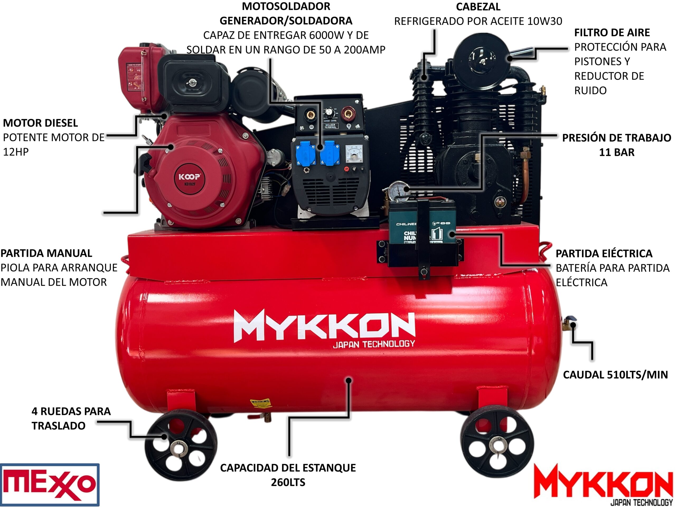 Compresor De Aire 260l Diesel Motosoldador 6000w 200a Estación de Trabajo Móvil Mykkon