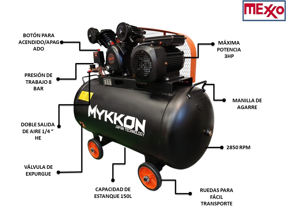 Compresor De Aire Industrial 150lt 3hp Mykkon Japón