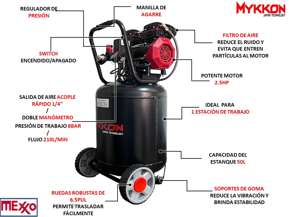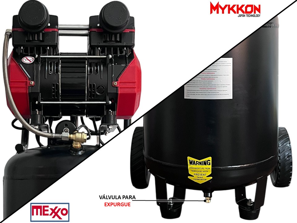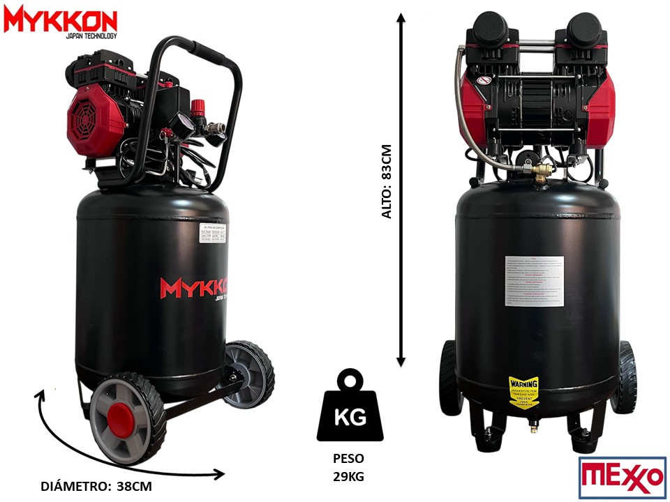 COMPRESOR SILENCIOSO 2.5HP, 50 LITROS MYKKON JAPON, TECNOLOGÍA CARTER SECO (OIL LESS)