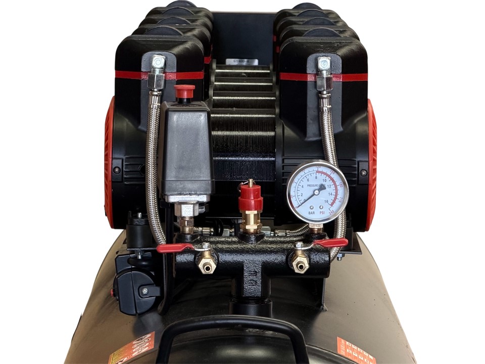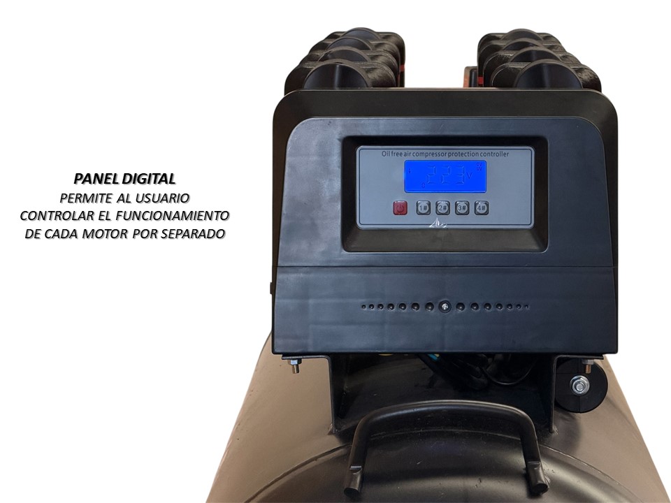 Con una potencia de 9HP y una capacidad de tanque de 300 litros, este equipo ofrece un excelente desempeño para múltiples unidades dentales operando simultáneamente. Su diseño robusto, junto con componentes de alta calidad bajo licencia japonesa, asegura durabilidad, eficiencia y bajo nivel de mantenimiento.