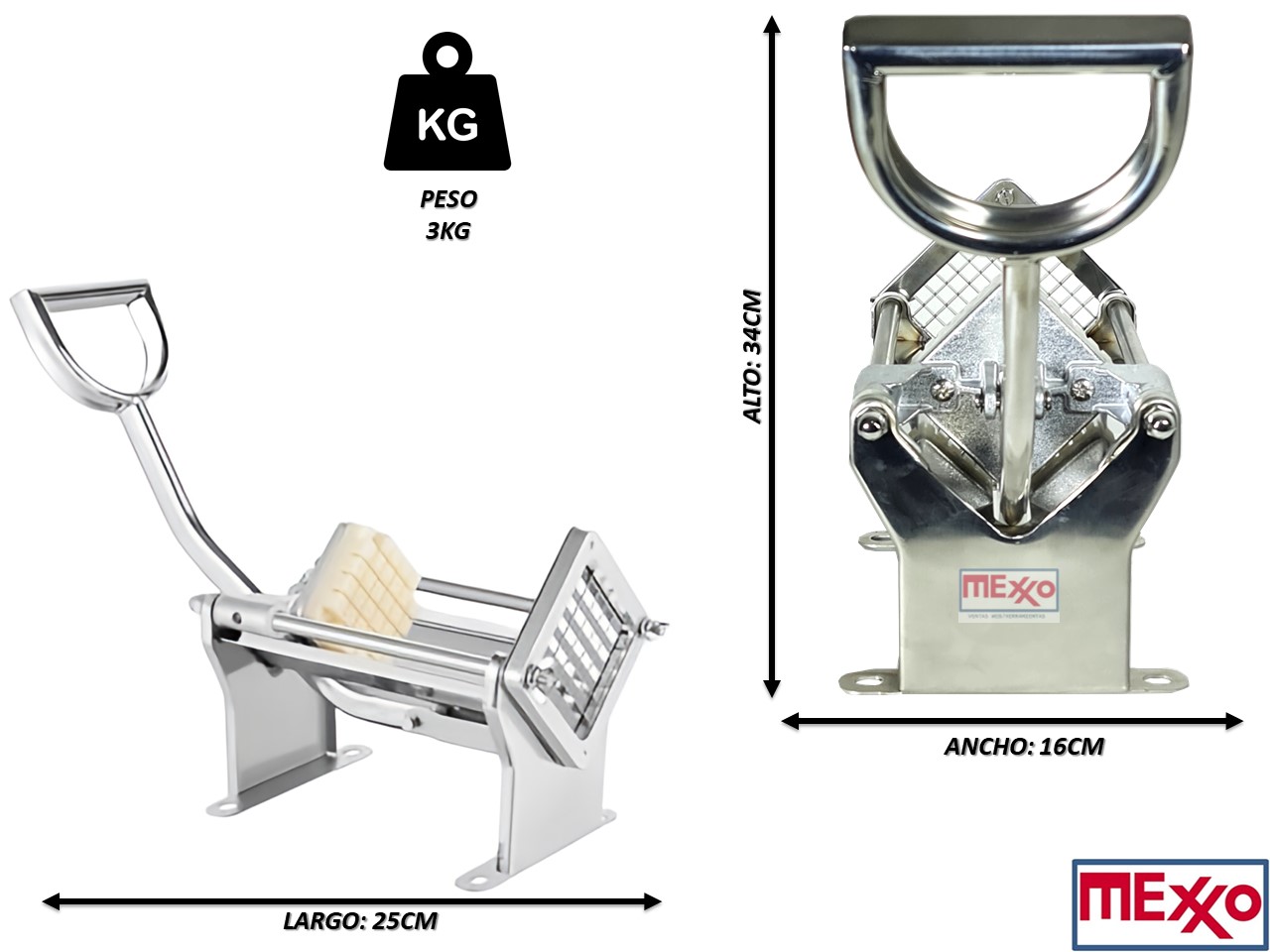 Eleva tus habilidades culinarias y agrega un toque gourmet a tus platos con nuestra cortadora de papas fritas de Acero Inoxidable. ¡Haz que cada comida sea una experiencia memorable con esta herramienta imprescindible para cualquier chef casero o profesional!