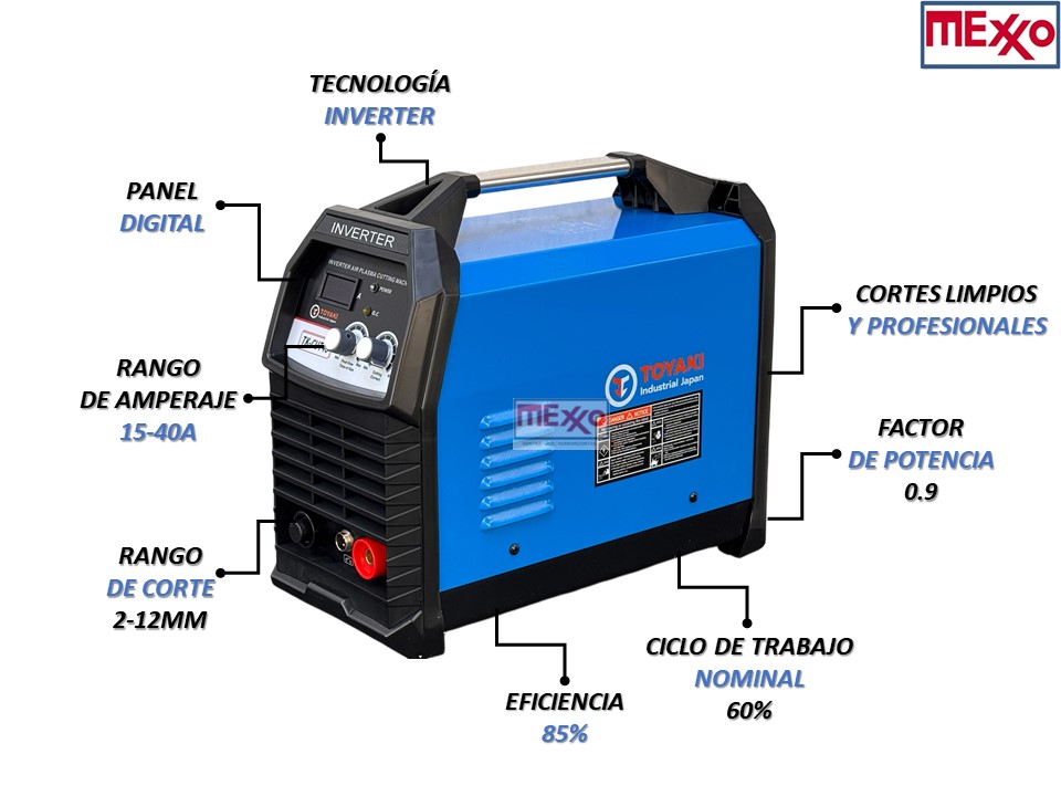 CORTADORA DE PLASMA TOYAKI CUT 40 ES UNA MÁQUINA DE CORTE POR PLASMA ESPECIALMENTE DISEÑADA PARA TRABAJOS QUE REQUIERAN ALTA PRODUCTIVIDAD EN CORTE DE METALES Y A LA VEZ LA PORTABILIDAD Y FLEXIBILIDAD QUE ENTREGA UNA CORTADORA MONOFÁSICA.