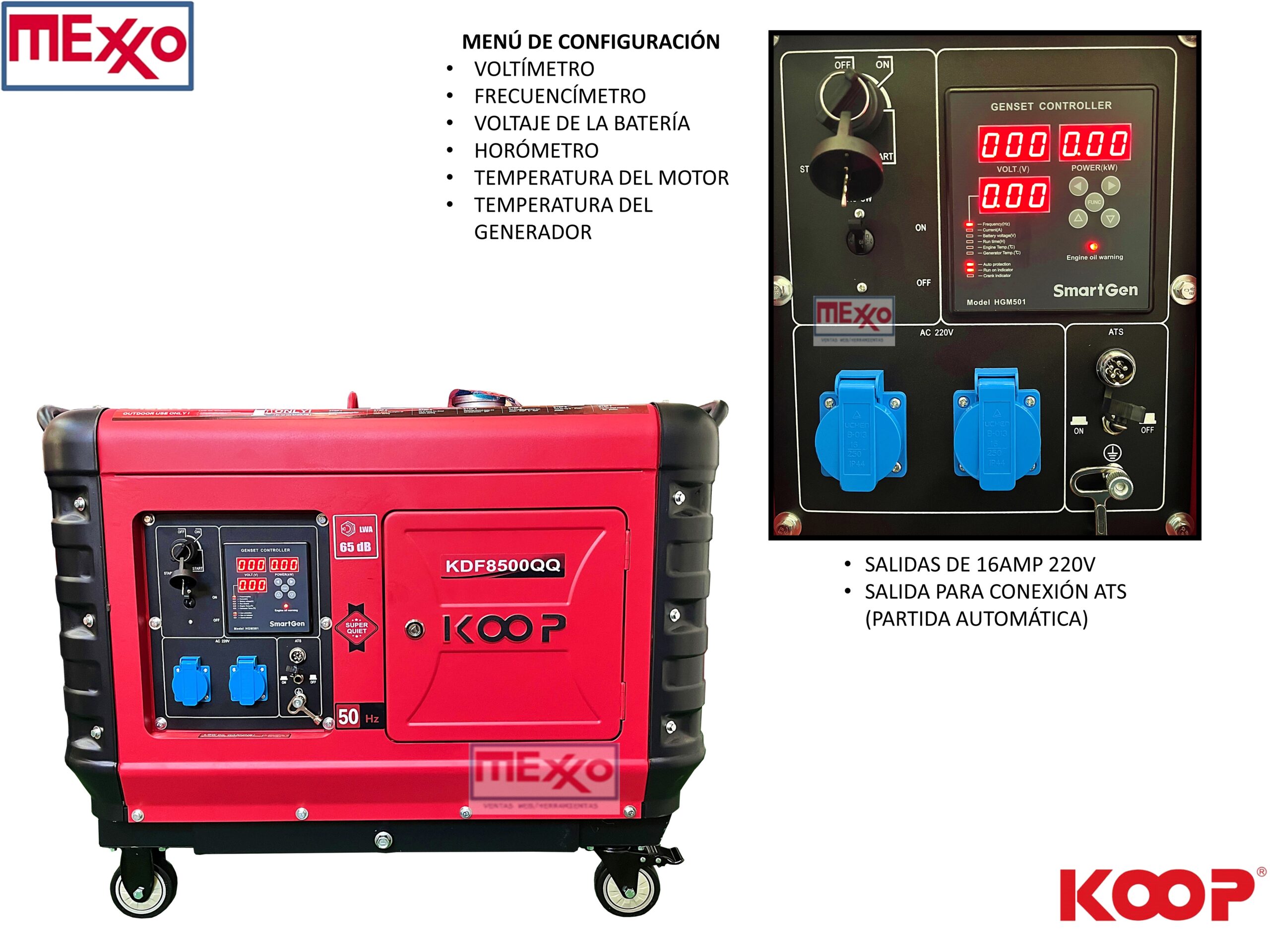 Generador Diesel Super Insonoro 6,5 kVA Koop con Tablero de Transferencia y ATS