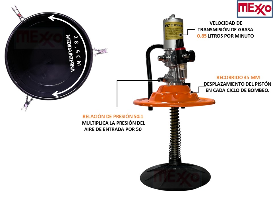 Velocidad de transmisión de grasa: 0.85 litros por minuto