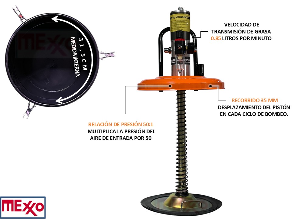 Velocidad de transmisión de grasa: 0.85 litros por minuto