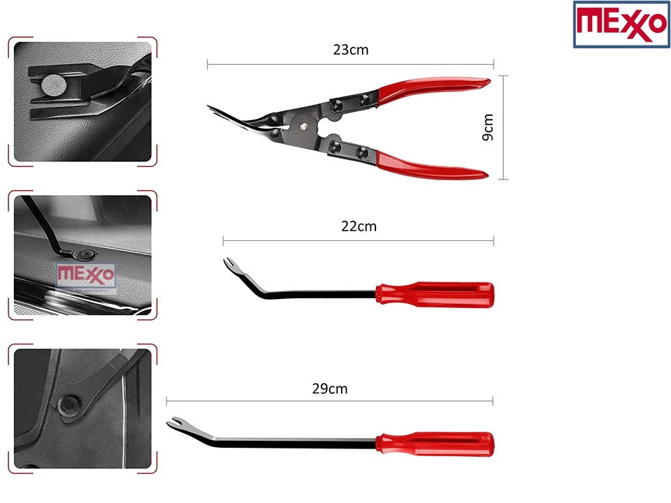 -Una amplia gama de aplicaciones: Adecuado para sistemas de audio / radio de automóviles, instalación o eliminación de paneles de puertas, líneas decorativas, cubiertas de ventanas o interiores de automóviles y restauración de muebles. La versátil caja de herramientas está disponible para todos los modelos en el mercado.