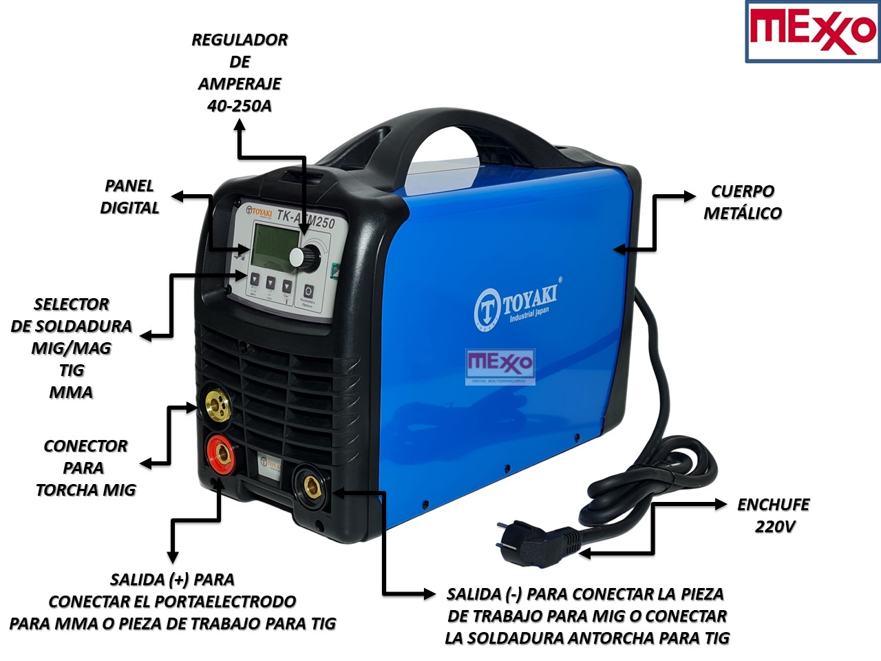 -La soldadura TK-ATM250 es una fuente de energía monofásica, de voltaje constante y corriente constante especialmente diseñada para soldadura mig-tig y mma.