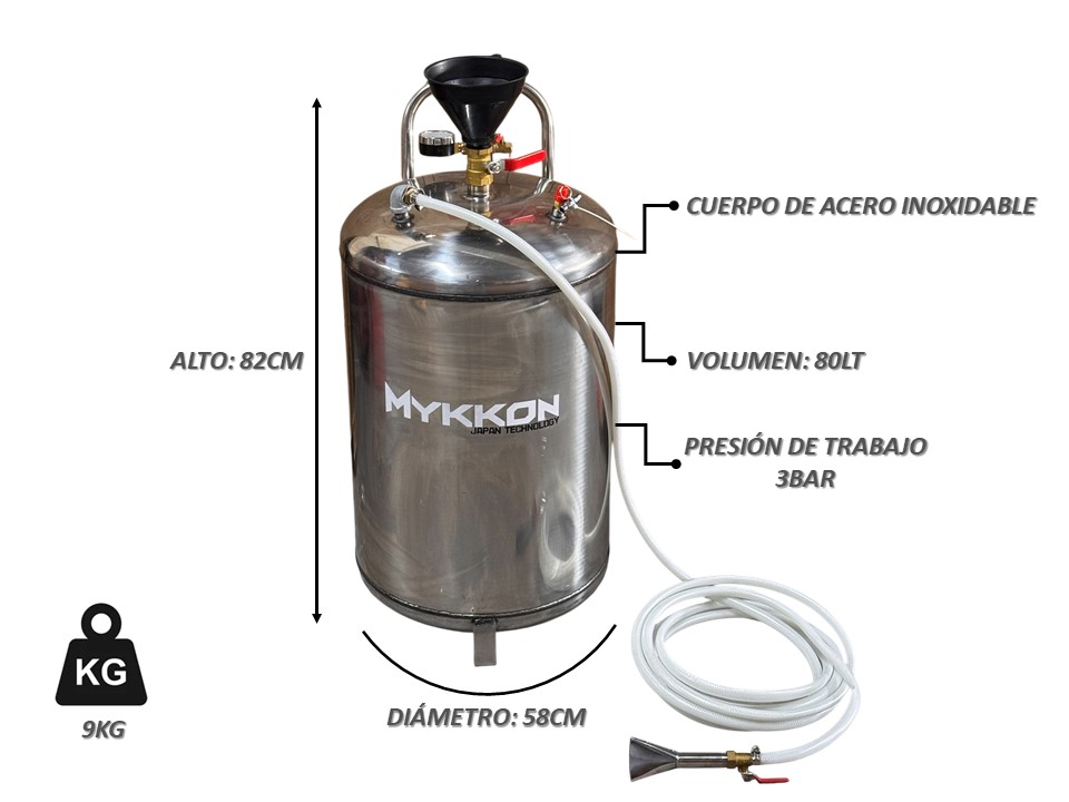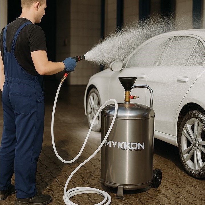 El espumador para autos 80LT Mykkon está diseñado para brindar una limpieza profunda y profesional en el lavado automotriz. Su estructura de acero inoxidable garantiza máxima resistencia, durabilidad y protección contra la corrosión, convirtiéndolo en una herramienta confiable para talleres, lavaderos y servicios de detailing.