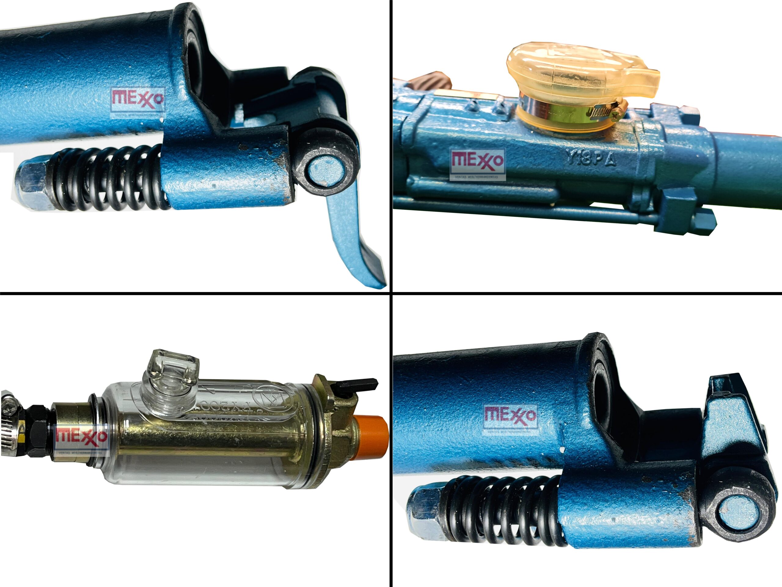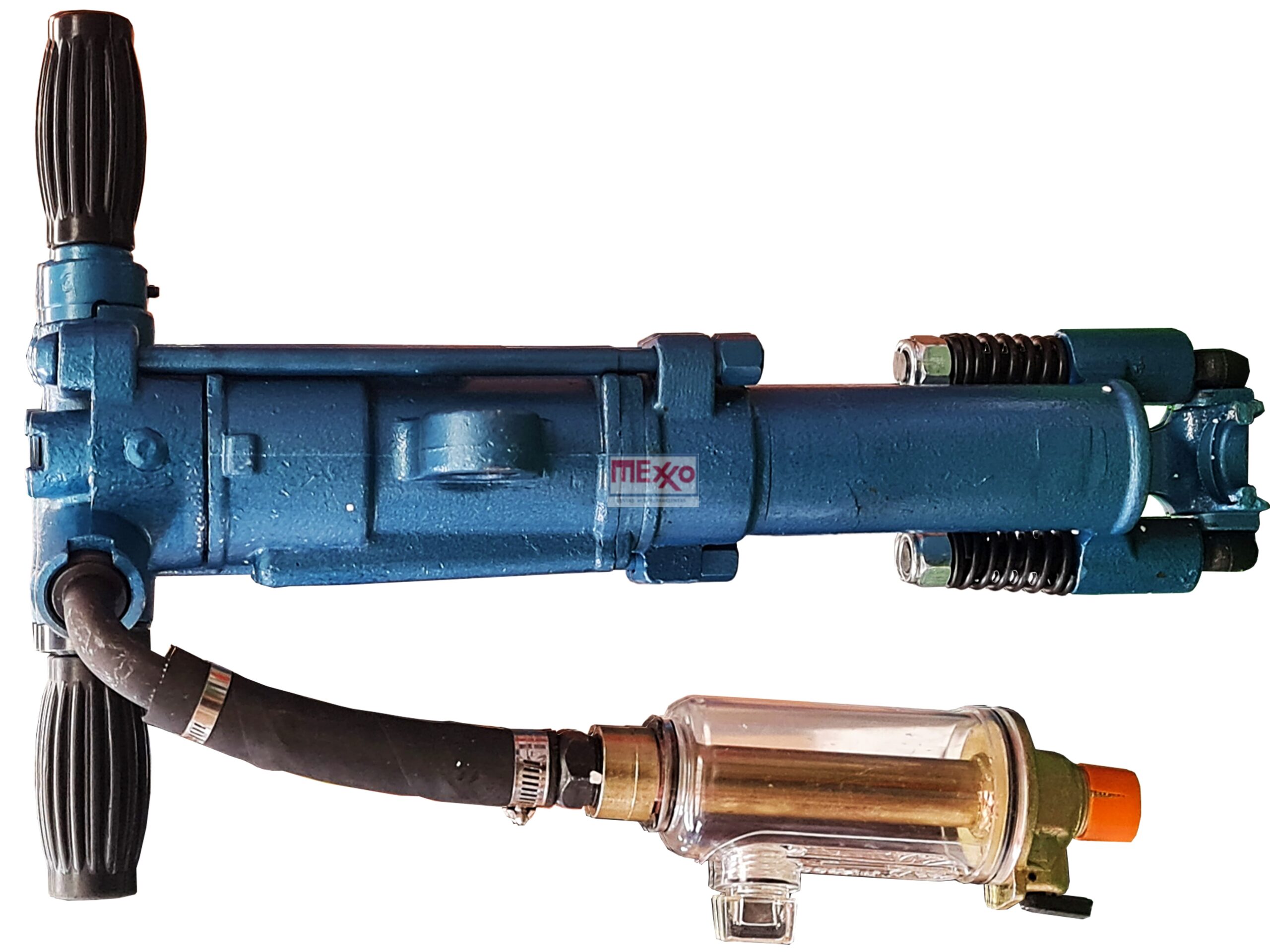 El taladro de roca neumático se usa ampliamente en la conducción de pozos de perforación en carreteras, mineras, construcción y una variedad de trabajos de ingeniería, metalurgia, carbón, ferrocarriles, tráfico, conservación de agua y proyectos de defensa nacional. Esta máquina es ideal para trabajos medianos de perforación en roca dura o húmeda con orificios horizontales o inclinados. Posee una profundidad de perforación efectiva de hasta 5 metros.