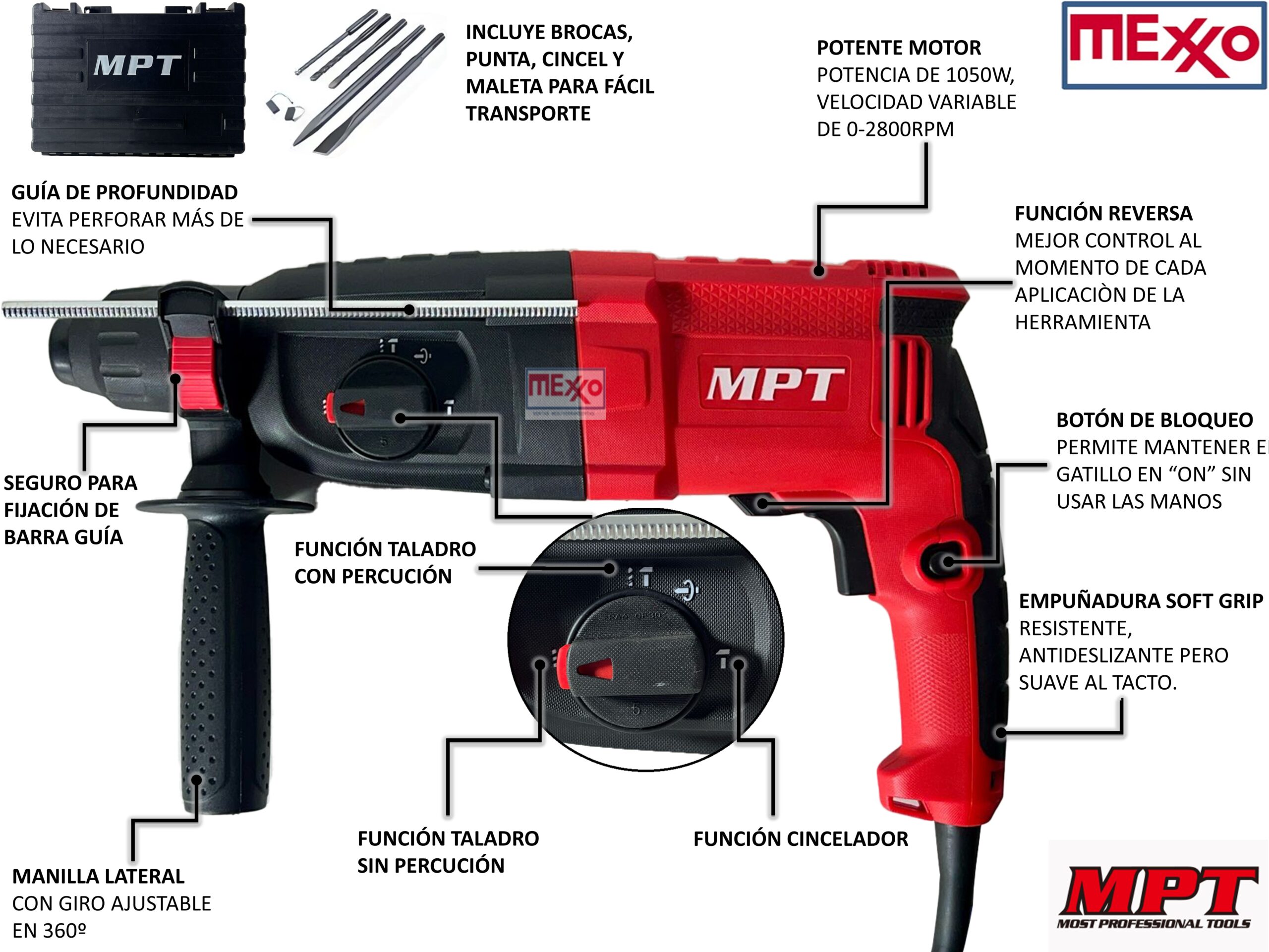 Rotomartillo 3 funciones, montado sobre rodamientos, inducido cobre, marca MPT