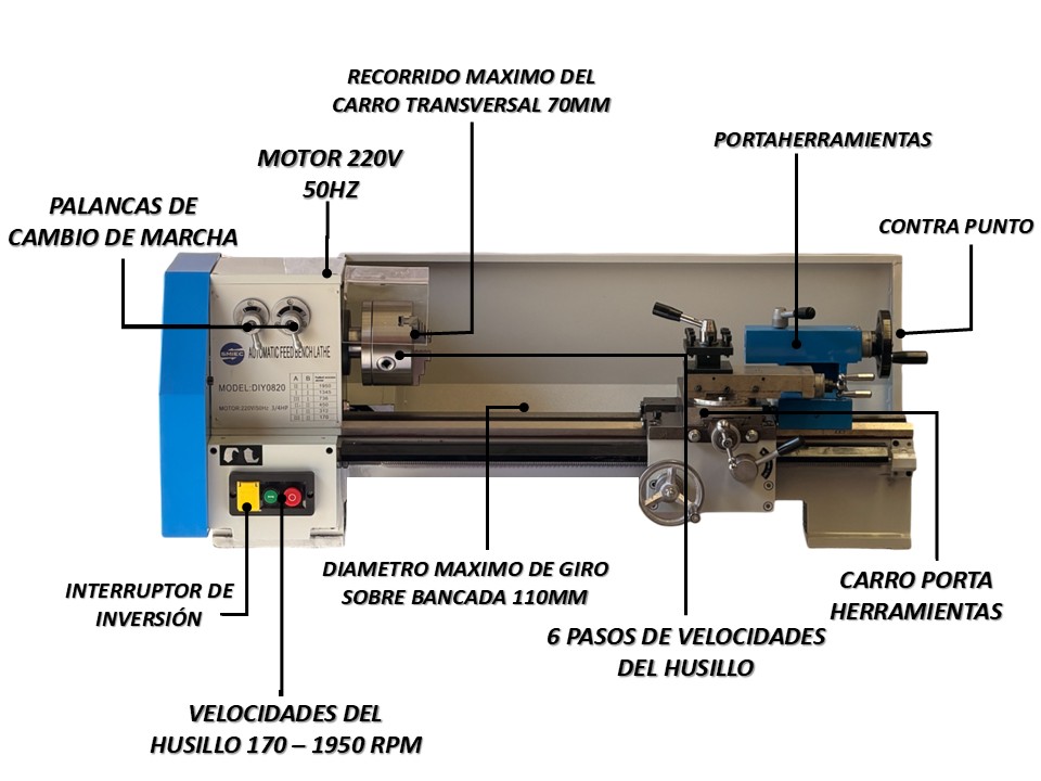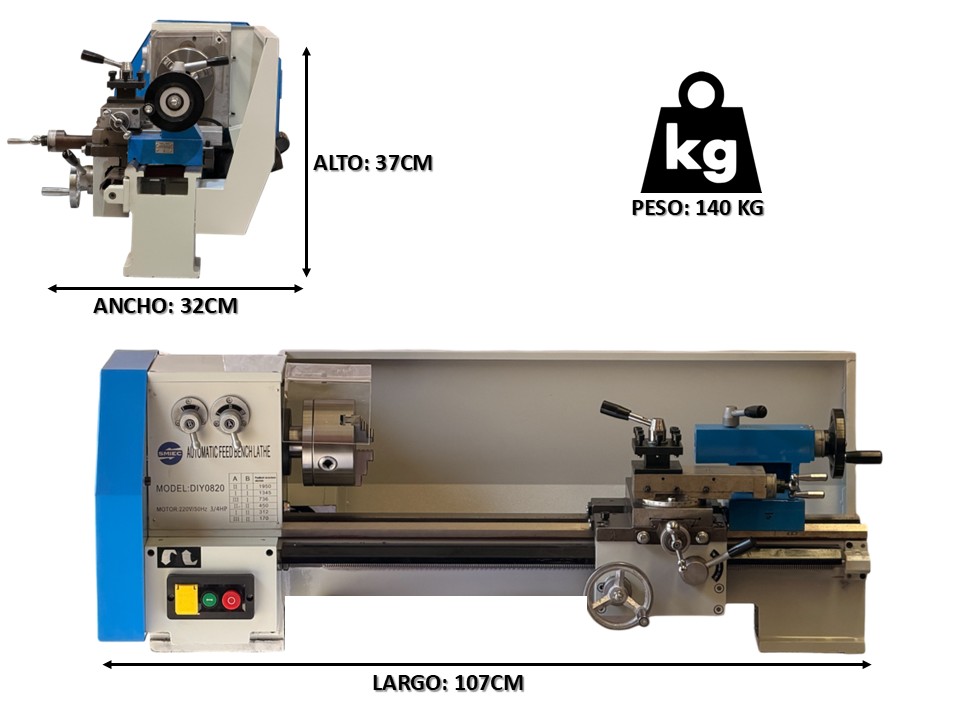 El Torno para Metales DIY0820 es una máquina de precisión diseñada para talleres mecánicos, metalmecánica, fabricación de piezas y trabajos de mantención. Con una estructura robusta, un motor eficiente y un excelente rango de velocidades, este torno ofrece un desempeño confiable tanto para aficionados avanzados como para profesionales.